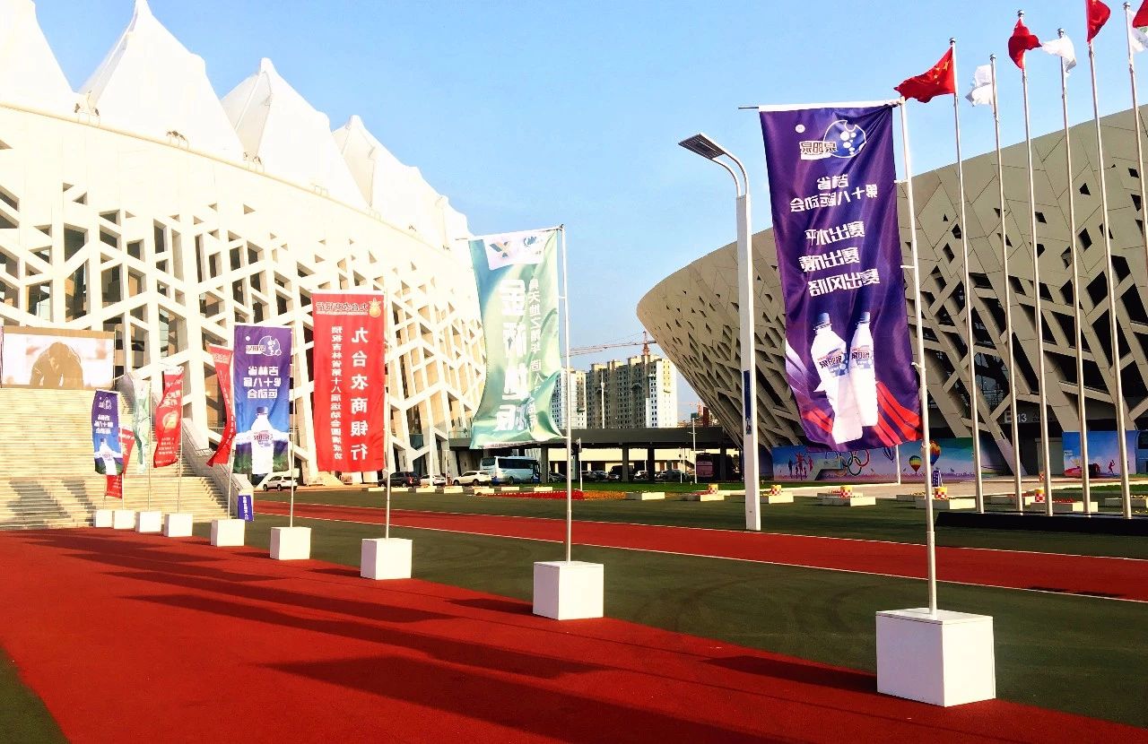 此次盛會中,泉陽泉共為裁判區大會提供20個帳篷、各賽場懸掛條幅7條、田徑場內A字板4個、道旗10個、戶外廣告牌4塊。
